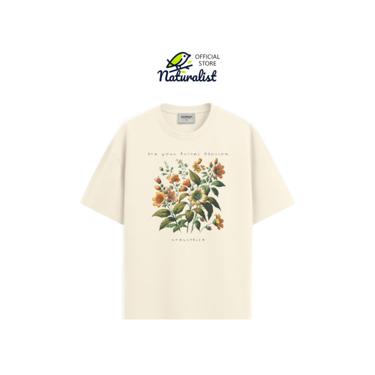 A beautiful cream tee featuring a vibrant floral illustration. Inspired by the brand’s motto, this design encourages you to grow, thrive, and embrace the natural beauty within yourself.